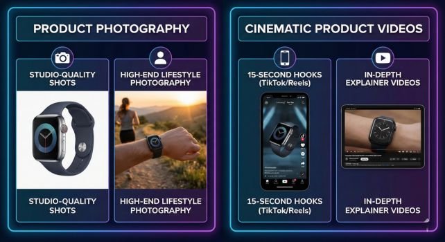 From Amazon FBA to Shopify Scaling—we fuse AI-driven data with world-class creative production to build e-commerce empires